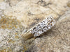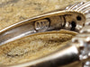 This band is set with twenty-two (22) natural diamonds, and what I suspect is a repair job it is also set with one (1) replacement glass replica diamond. Take a look at the second picture, you can see the replacement there.