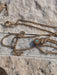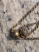 This gold filled muff chain is lightweight and is perfect to wear in a layered look. The rope chain is strong and secure and it catches the light and looks wonderful. The slider is set with the original stones: three creamy white seed pearls and an opal. The slider has fluid movement throughout the chain. The back of the slider has an Etruscan revival look and the details are fine and lovely.