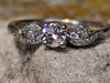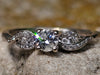The centre diamond measures 4mm round, and is estimated to weigh 0.25 cts. The diamond is a natural earth mined diamond.