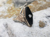 Onyx and Diamond Ring / Onyx Pinky Ring / Antique Onyx Ring / Art Deco Ring