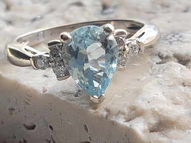 Aquamarine and Diamond Ring / March Birthstone / Birthstone Ring