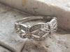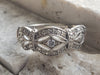 This beautiful band is a stunning modern version of a filigree ring. Accented with diamonds it makes the perfect right hand ring or a band to pair with your vintage engagement ring.