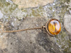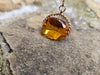 This Art Deco glass spinner fob was put on a chain and used as a lovely and stunning pendant. The citrine glass does have small chips on some of the facets but there is minimal scratches across the table of the glass. This is unusual for pieces of that era.