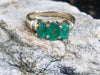 This ring is set with three (3) deep green emeralds. All the emeralds are oval in shape and the largest measures 7mm x 5mm which is an estimated to weigh 0.85 cts. The other two (2) emeralds are 6mm x 4mm which are estimated to weigh 0.52 cts each.